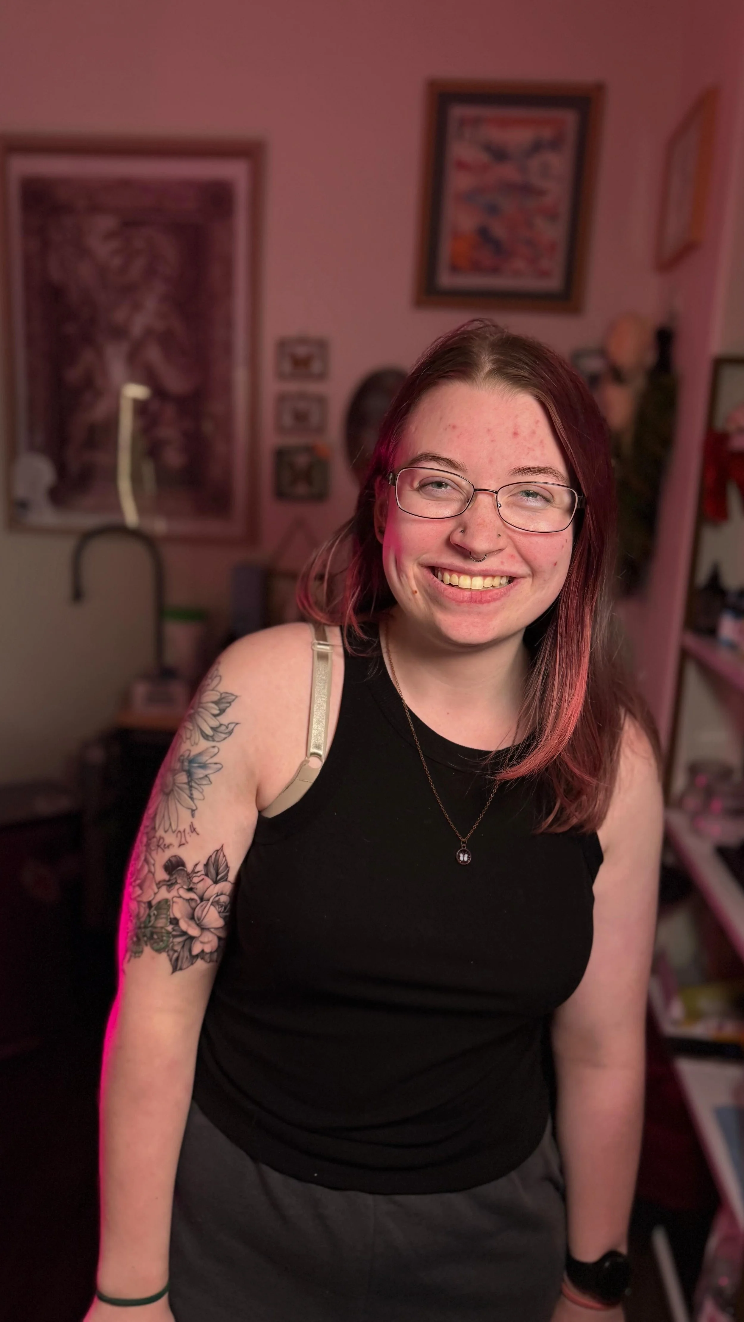 Sarah is one of the founding artists of Ink Pony Club and the soul behind its vision. With more than a decade of experience and a deep love for storytelling through tattoos, she creates pieces that are personal, powerful, and quietly unforgettable. Clients love Sarah for her warm presence, steady hand, and ability to turn even the most abstract feeling into something beautiful. She’s as good at calming first-timers as she is at collaborating with longtime collectors.